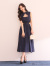 チェック柄レースを重ねたフレアロングドレス。