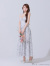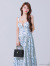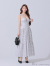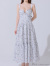大人っぽい花柄のフレアロングドレス。