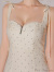 ビジュー付きジャガード素材が、動くたびに上品なきらめきをプラス。