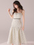 華奢な肩ストラップは取り外し可能で、シーンに合わせた着こなしが楽しめるデザイン。