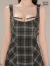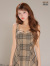 暖かみのあるベージュチェック柄が、優しくフェミニンな印象を与えます。