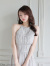 首元で結ぶホルターネックデザインがデコルテを美しく見せ、華奢見え効果も抜群。