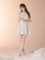 ミニ丈ながらも落ち着きのある素材感で、可愛らしさと高級感を両立させた一着です。