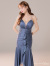 サテンの質感が高級感を演出してくれるロングキャミドレス。