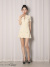 深く開いたネックラインと、ウエストからふんわり広がるフレアスカート。
