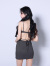 胸元から肩にかけてあしらわれたゴールドのチェーンストラップが、リュクスなアクセント。