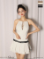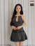 デコルテ・ベルト・スカートのプリーツ部分のフェイクレザー切替が個性的。