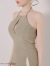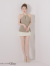 リブ素材のトップスにゴールドボタンがアクセントのセットアップ。