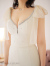 オーガンジー素材のリボンとデコルテビジューの組み合わせがROBEdeFLEURSらしいセットアップドレス。