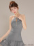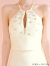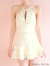ビジューを施したホルターフレアミニ♡