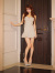 ラメ入り薄手ツイードとチュールの組み合わせが、可憐な雰囲気を漂わせる一枚。