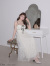 全体に施されたドットパールと、胸元を飾るブラックリボンがアクセントに。