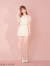 立体的なフラワーレースがロマンティックな魅力を放つオフショルダーツーピース。