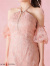 立体的な花柄レース素材を使用した高級感あふれるミニドレス。