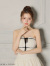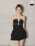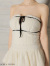 トップスはシンプルなベアトップデザインで、アクセサリーが映えるデザインです。