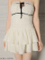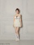 胸元とスカートにデザインされたリボンとフリルがガーリーなミニドレス。