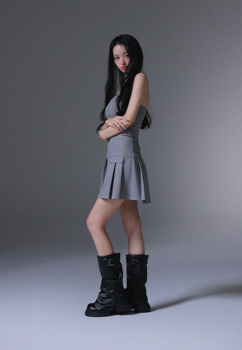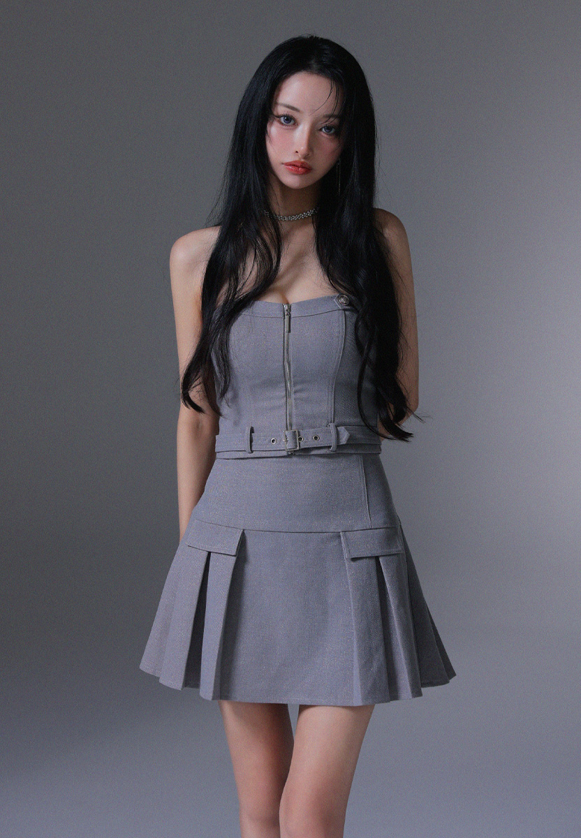 Center zip belt set-up pleated mini (GL3943) ¥29,480-