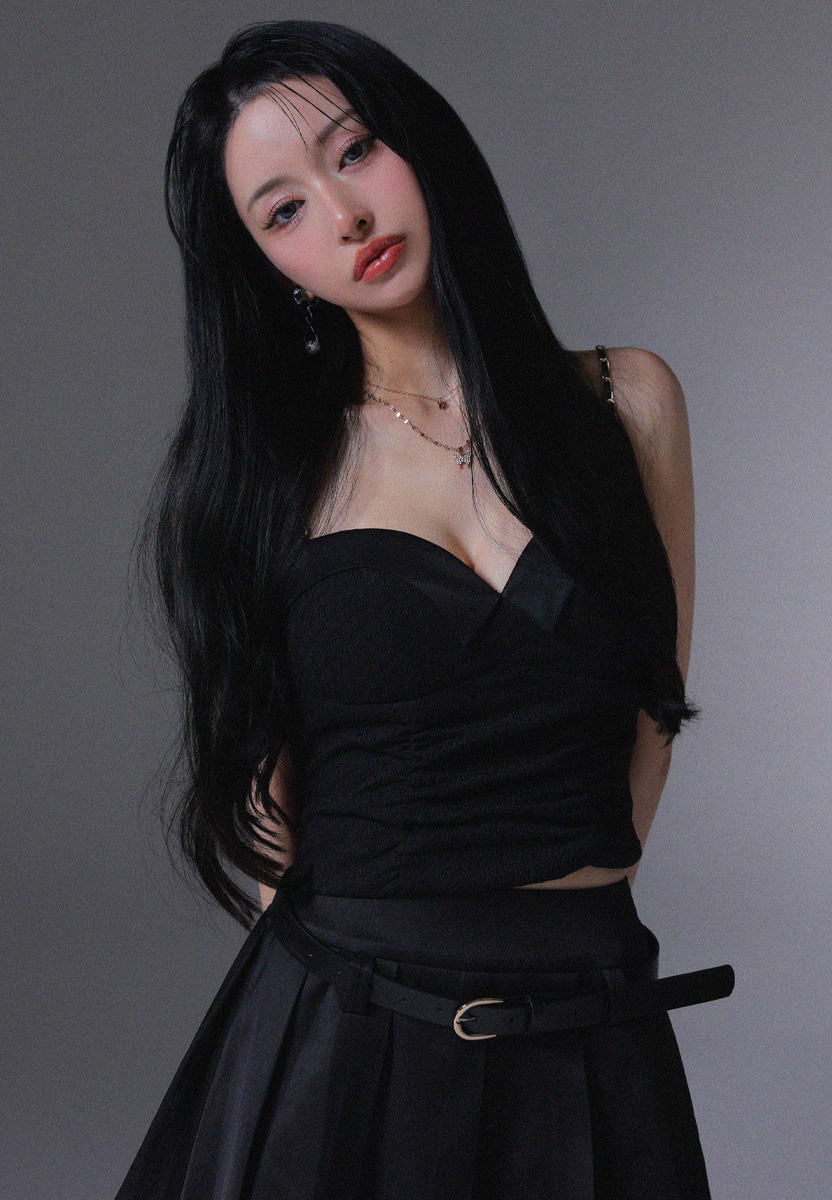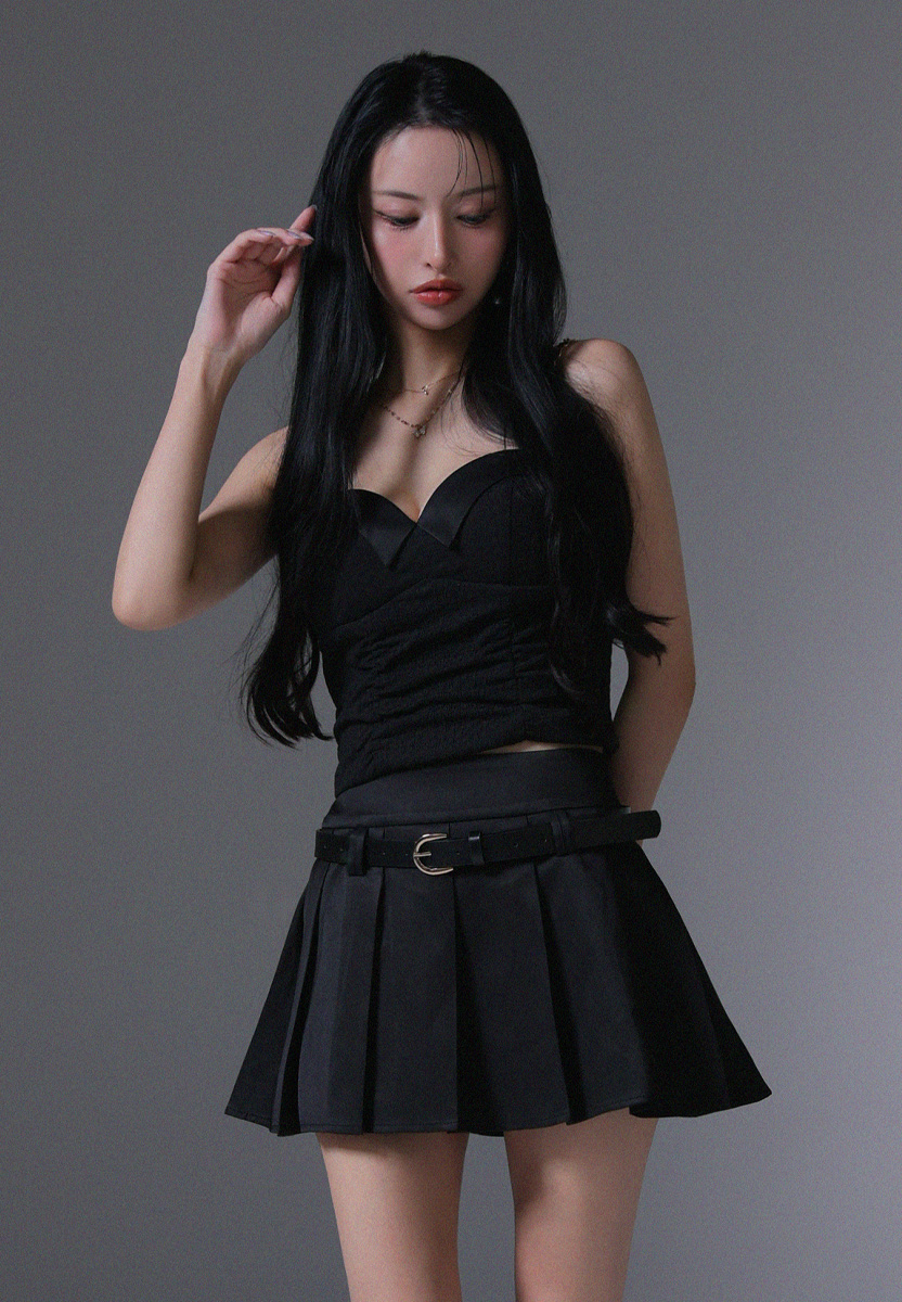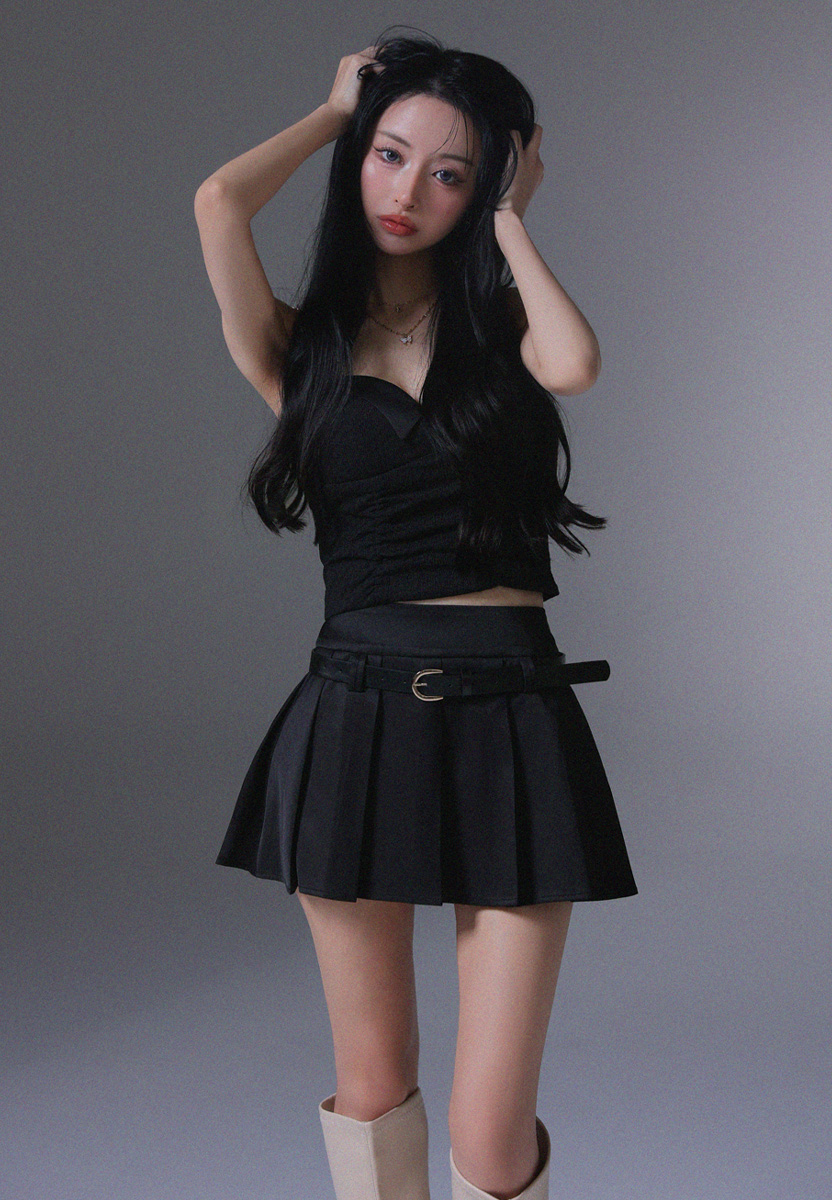 Heart-cut set-up pleated mini with belt (GL4219) ¥27,280-