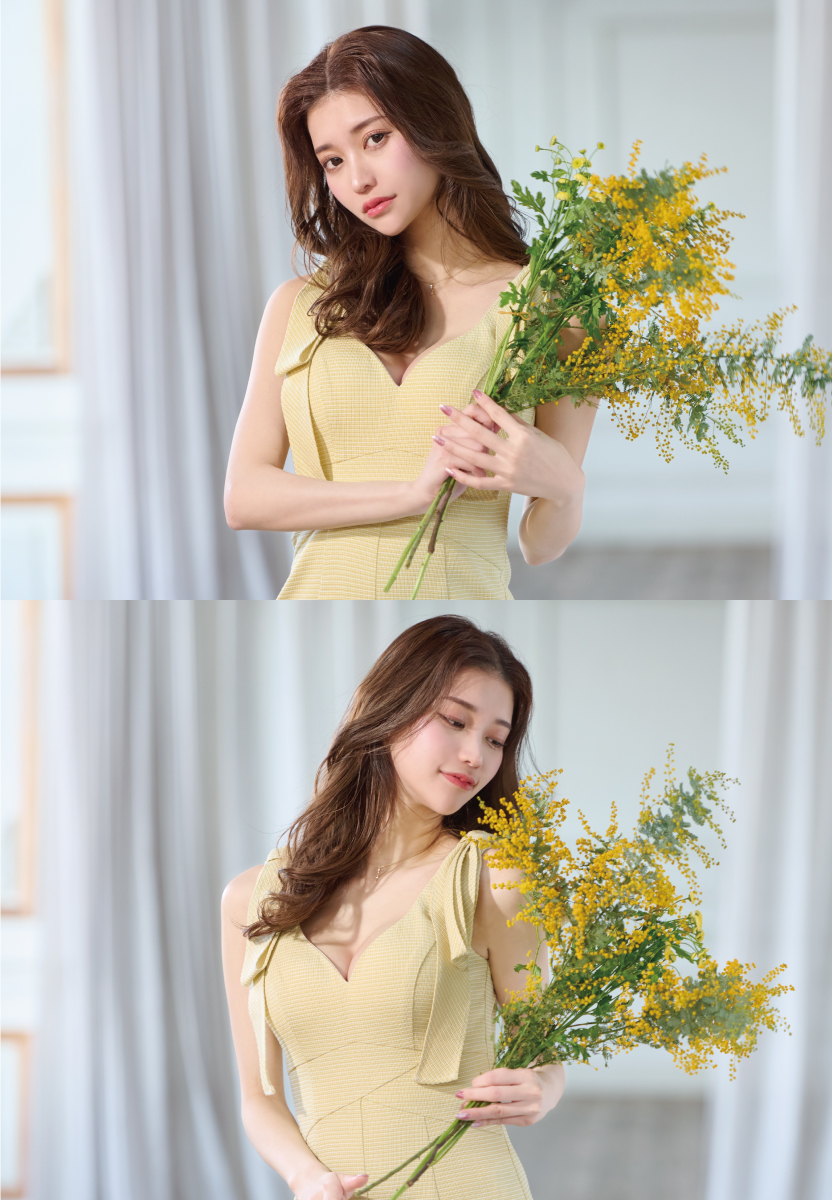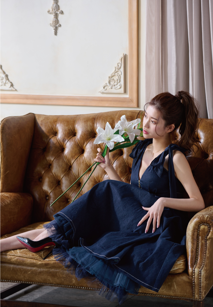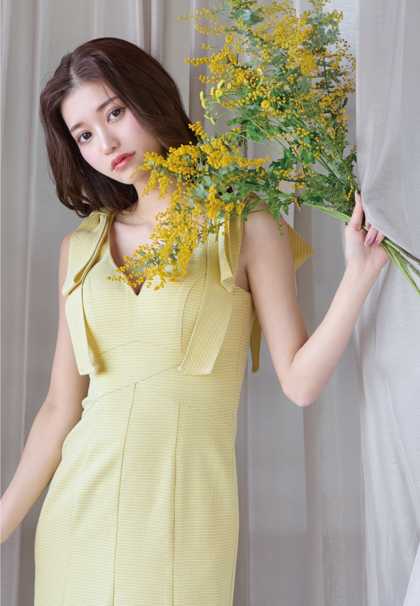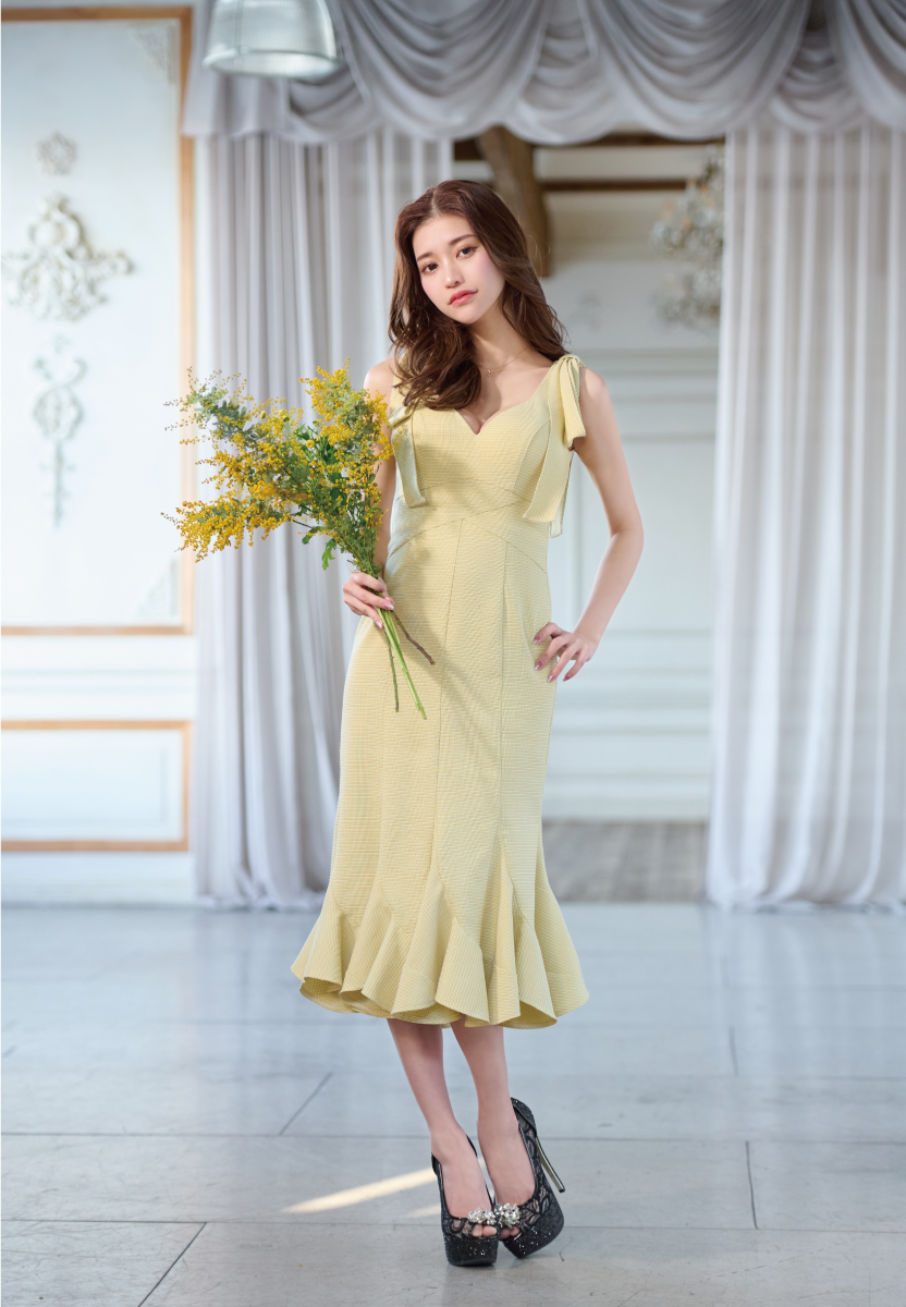 Shoulder Ribbon Mermaid Midi Dress (DE2839) ¥29,480-
