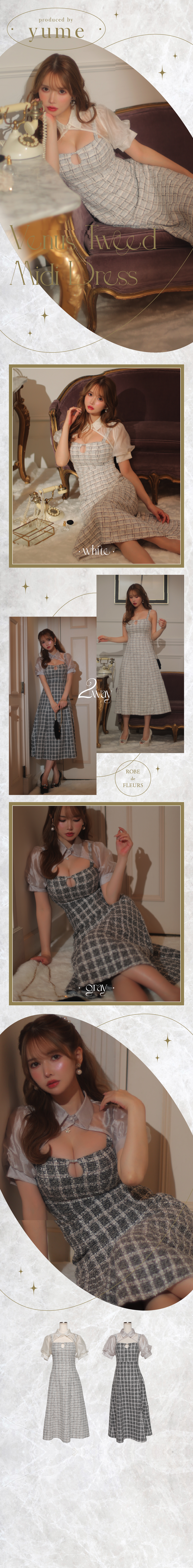 ツイード・フレア・シースルーを詰め込んだ大人SEXYなミディドレス。 上着を着て上品に着こなすことも、上着なしでセクシーに着こなすこともできる一枚。