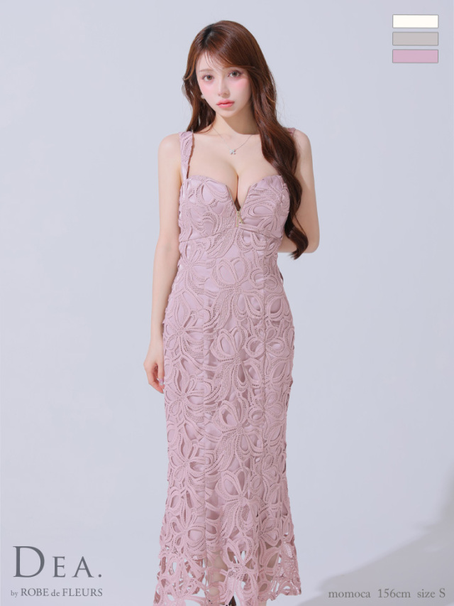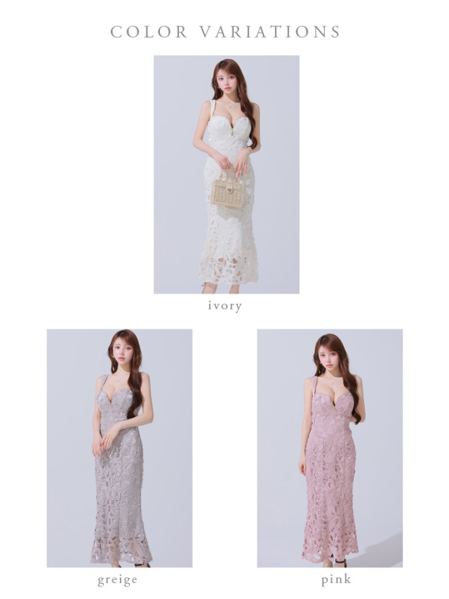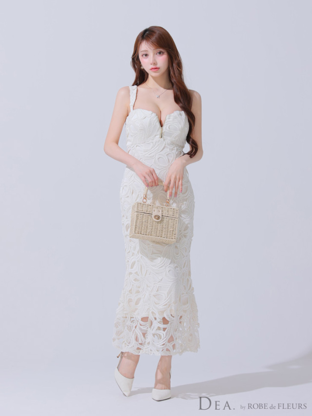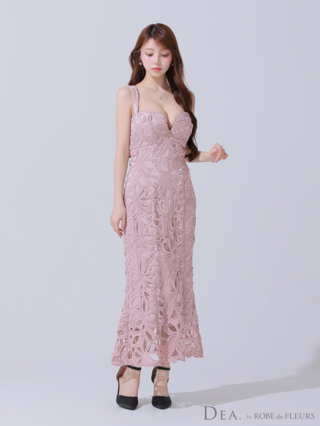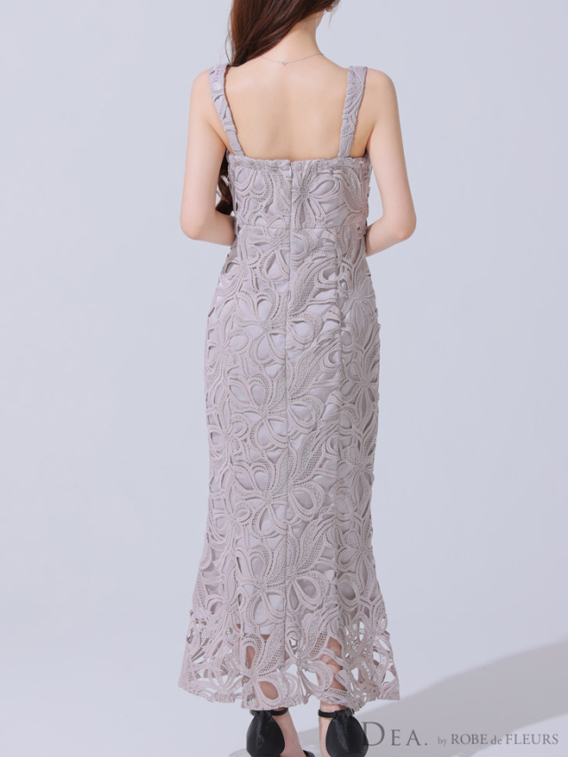 大きめのレースが個性を出してくれるロングドレス。