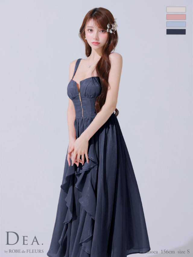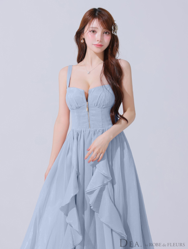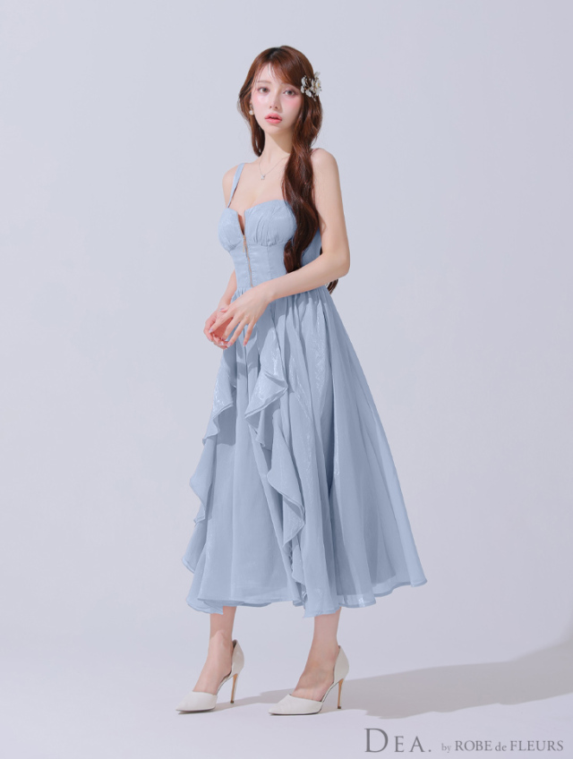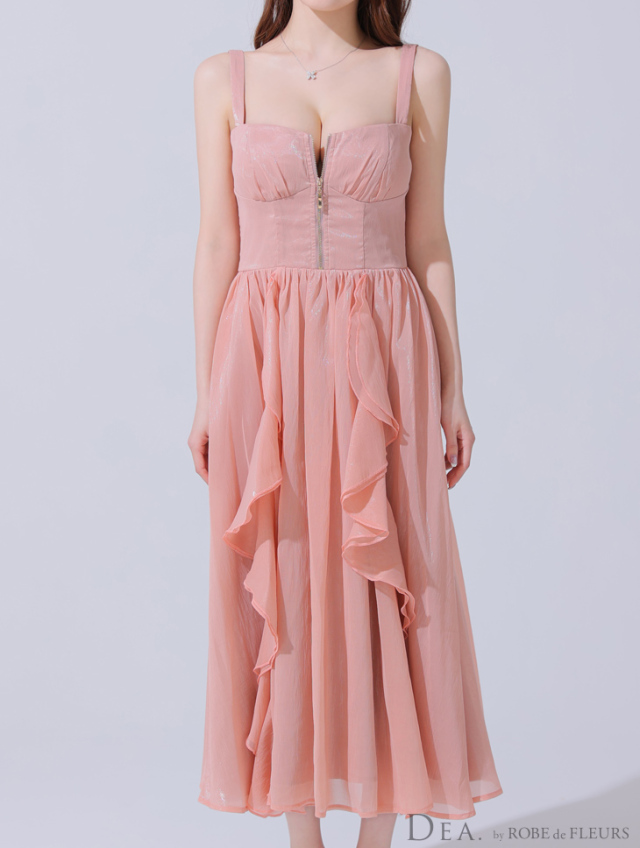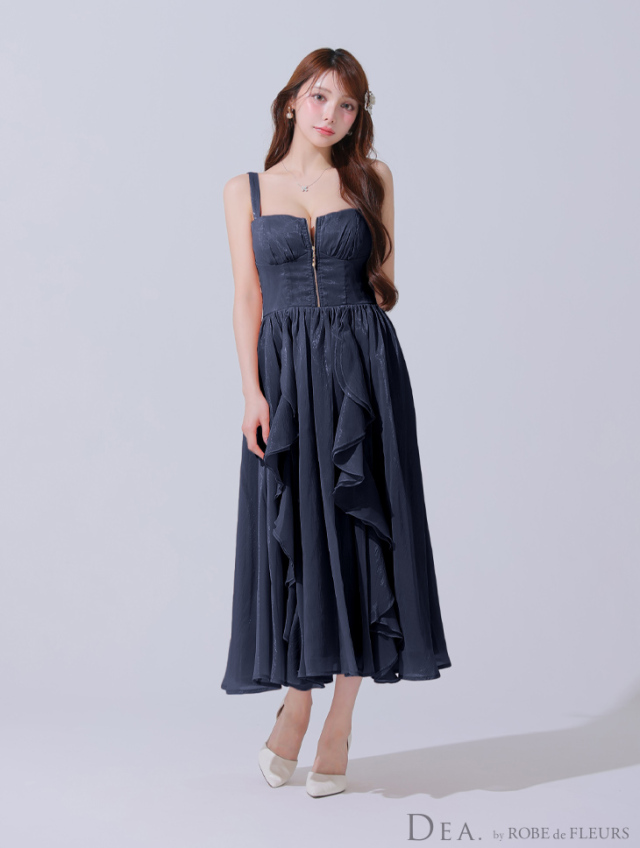 フロント部分のフリルデザインが可愛いフレアドレス♡