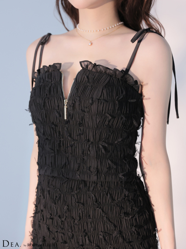 背中は大胆なデザインで、華奢なストラップが後ろ姿まで美しく♡
