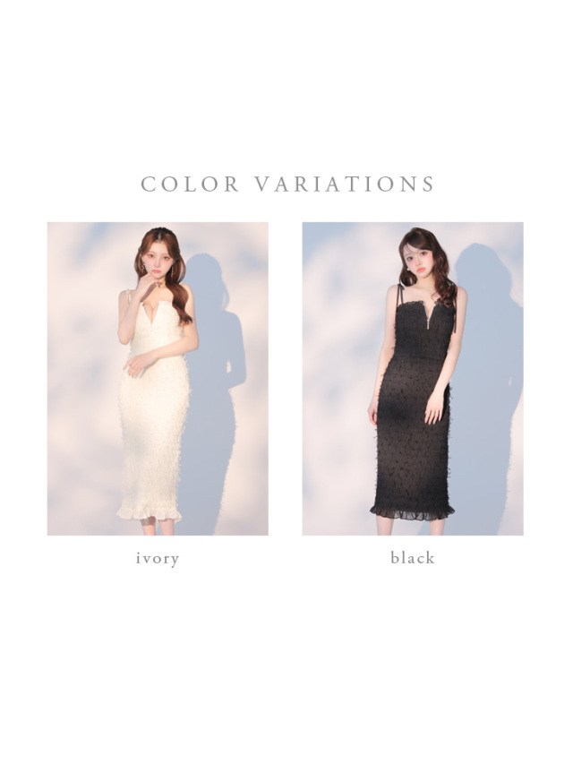 立体チュール素材が、洗練された大人な印象のツーピース。