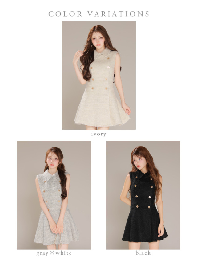 ふんわりとしたシャギーウール調の素材が高級感を醸し出す、クラシカルなミニドレス。