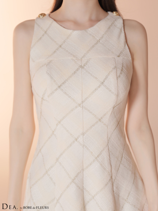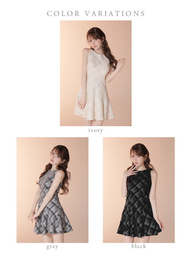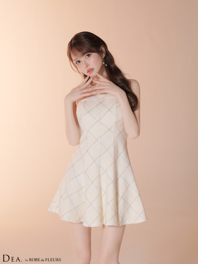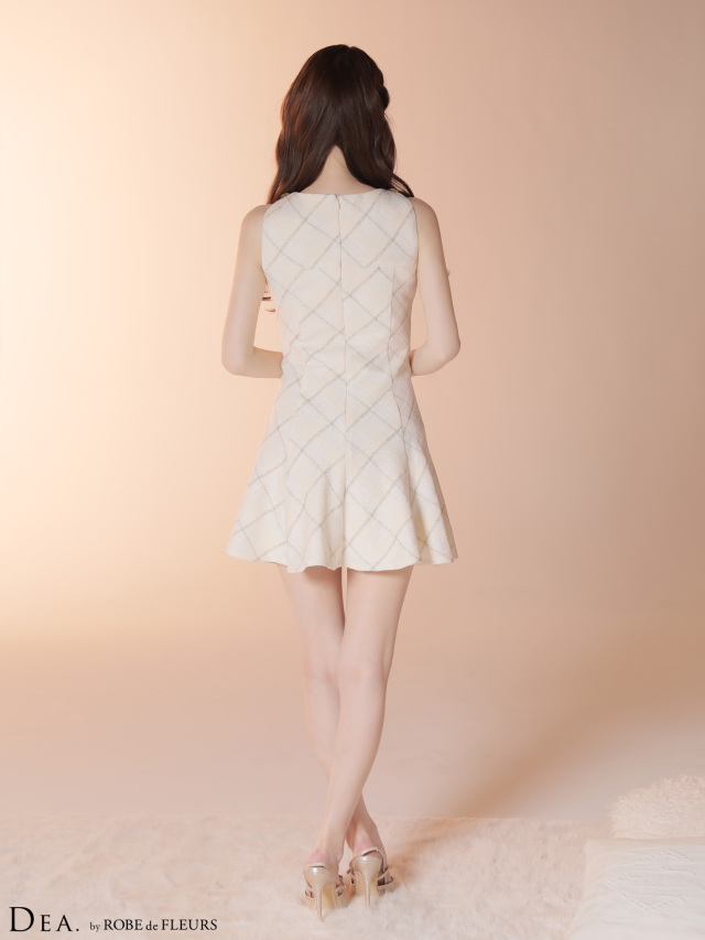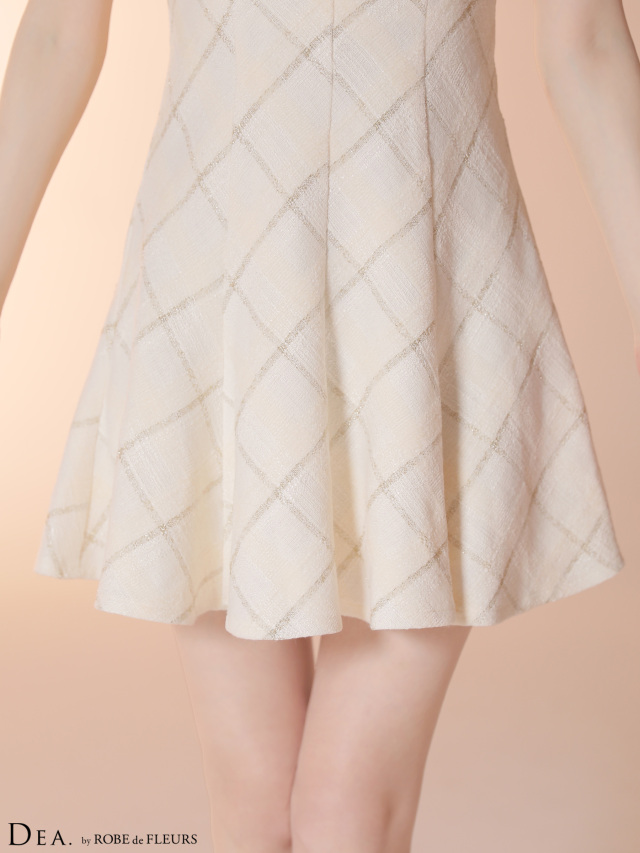 ミニ丈ながらも落ち着きのある素材感で、可愛らしさと高級感を両立させた一着です。