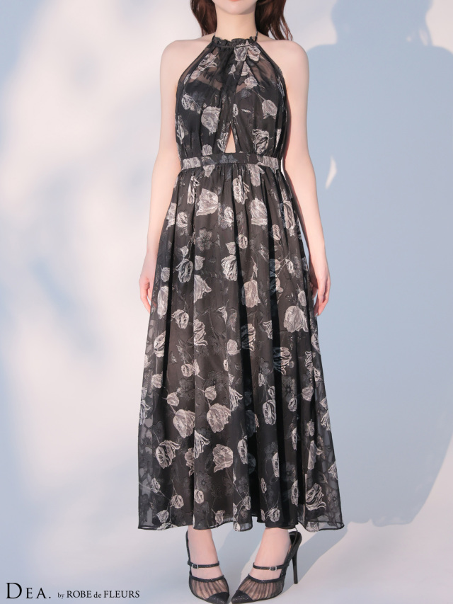 エレガントな花柄が上品なロングドレス。