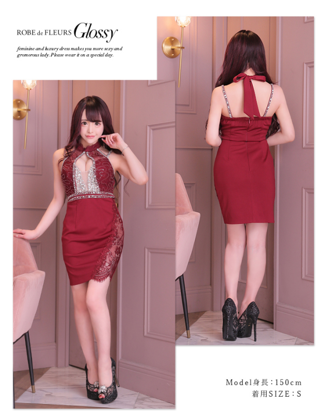 胸元のビジューが目を惹くラグジュアリーなタイトミニドレス♡