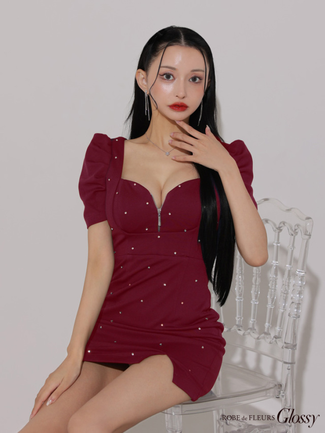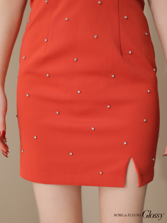 スタッズが配置された、シーズンムード高まるタイトミニドレス♡