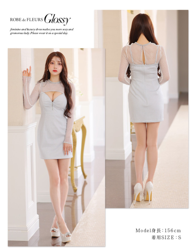 メッシュスリーブがセクシーなタイトミニドレス♡