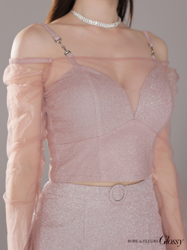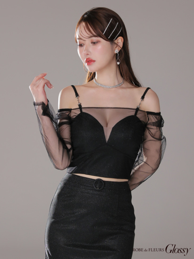 チュールが透けるセクシーな長袖ドレス。
