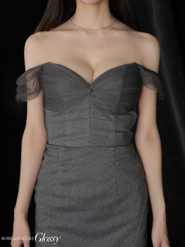 オフショルダーがデコルテラインを綺麗に見せます。