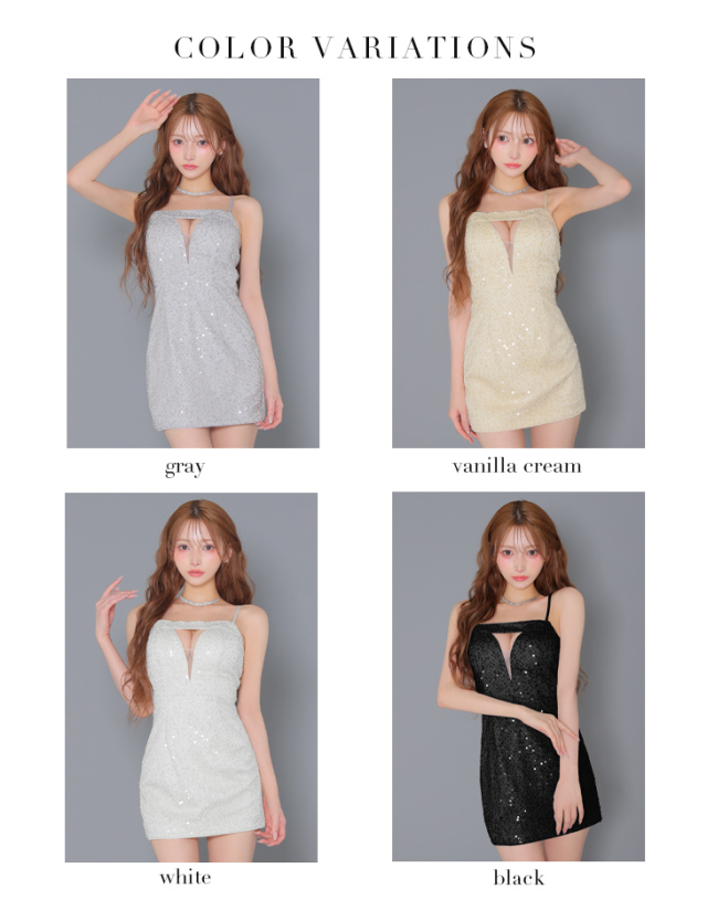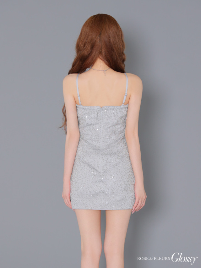 スパンコールが輝くミニドレス。