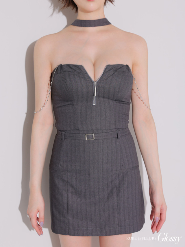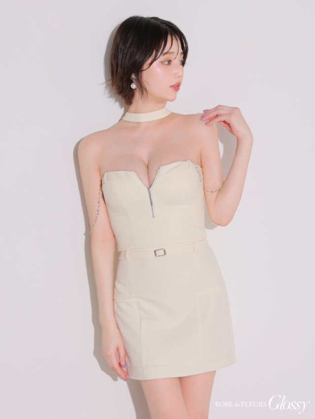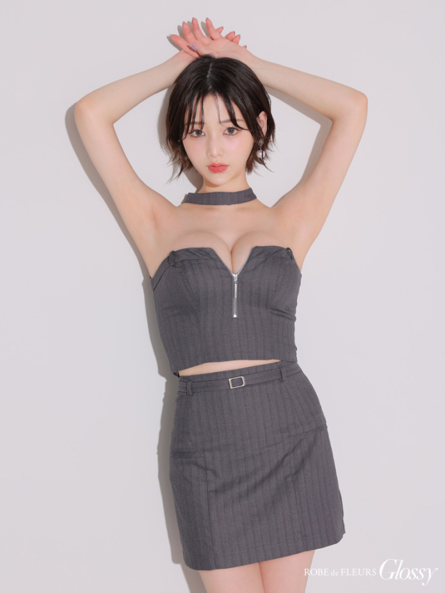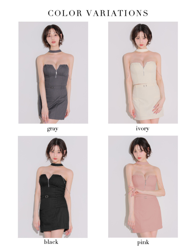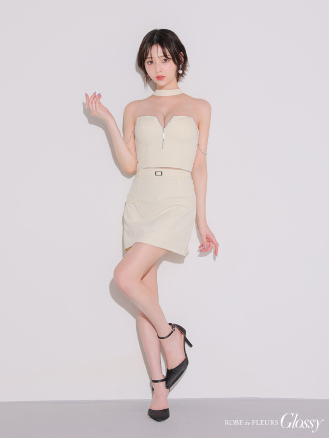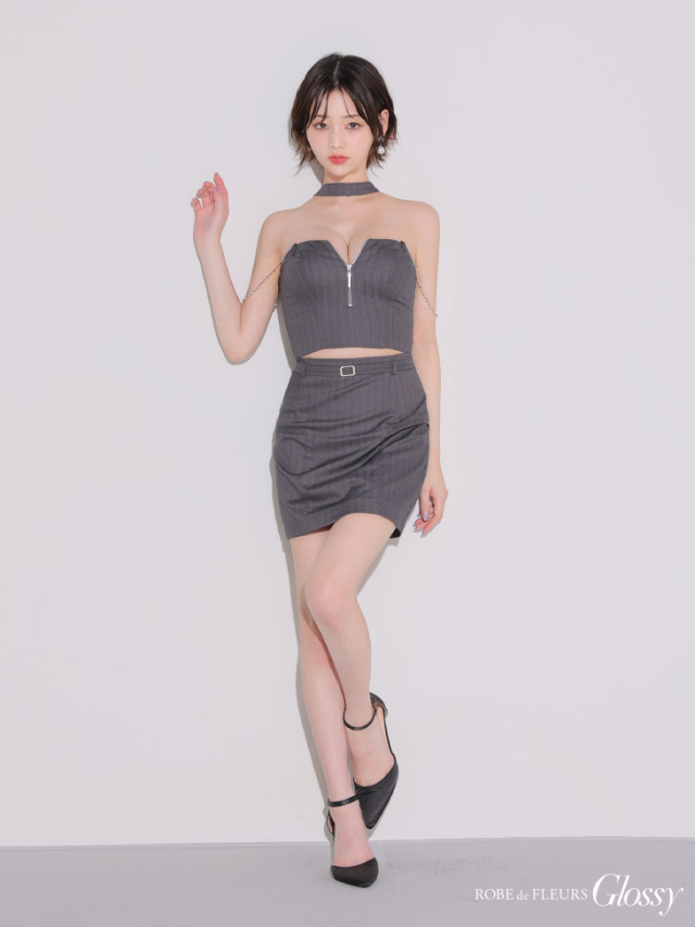 | ■XSサイズ バスト約77cm ウエスト約55~63cm ヒップ約83cm 着丈(トップス)脇下約17cm(スカート)約35cm |