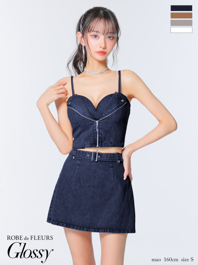 ジップデザイン×デニムがスタイリッシュなセットアップミニ。