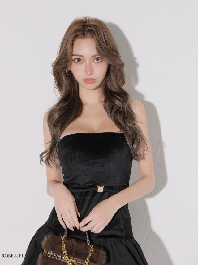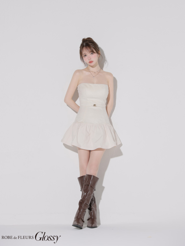 デコルテラインを美しく強調するベアトップデザイン。
