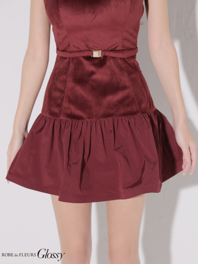 ウエストにあしらわれたバックルがアクセントとなり、スタイルアップ効果抜群のシルエット。