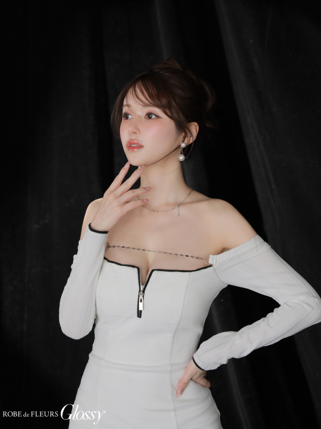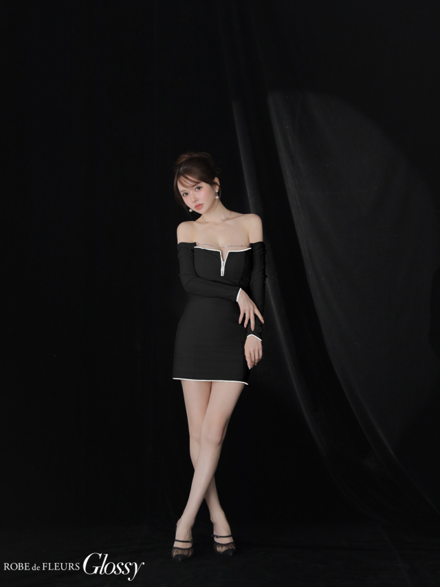 長袖なので肌見せを抑えつつ、オフショルでデコルテは華やかに。