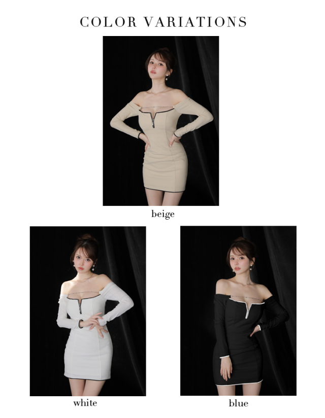 トレンドのオフショルダーデザインを取り入れた、シックな長袖ミニドレス。