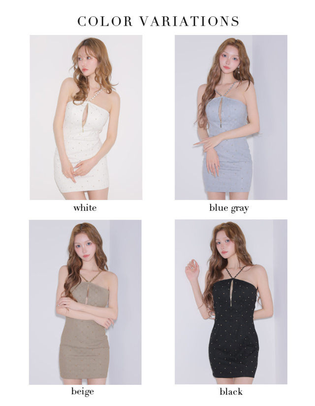 スタッズとチェーンが強めの女性を演出するミニワンピ。