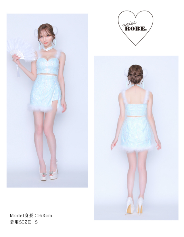 | 素材 | ファー、スパンコール付きレース、サテン |