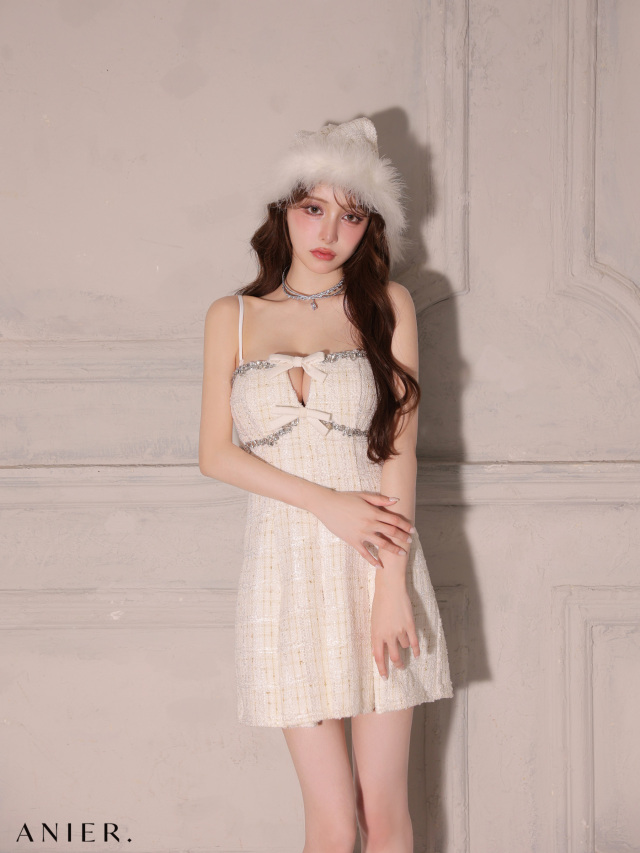大人ガーリーテイストのクリスマスドレスを今年風にアレンジしました。
