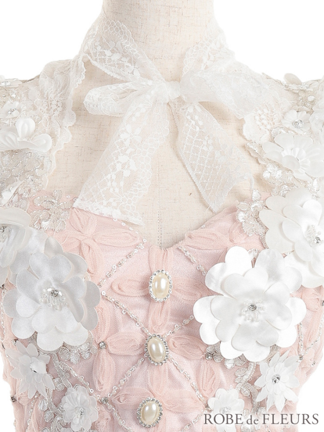 | 素材 | スパンコール付き立体フラワーチュール、サテン、レース、立体フラワーモチーフ |