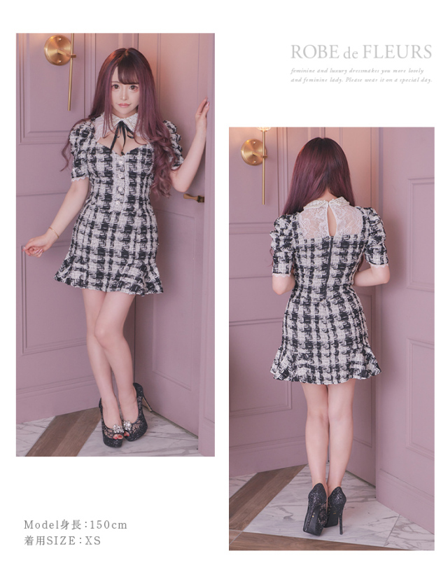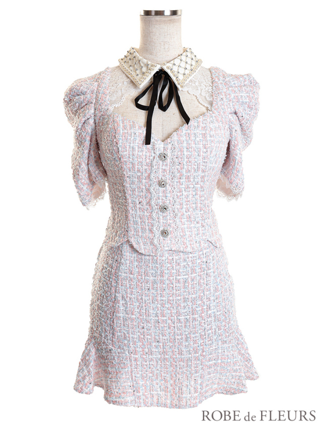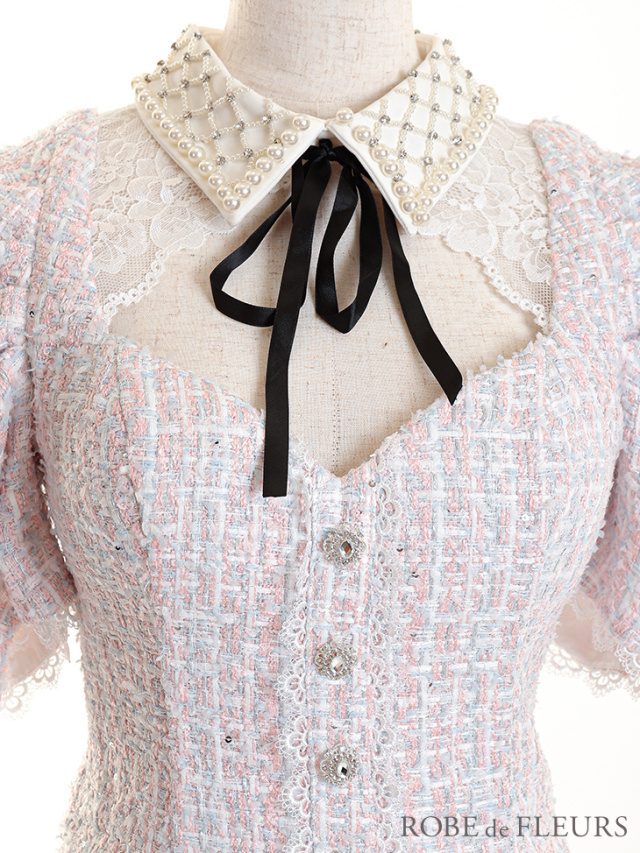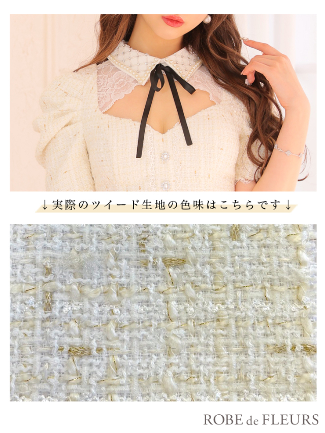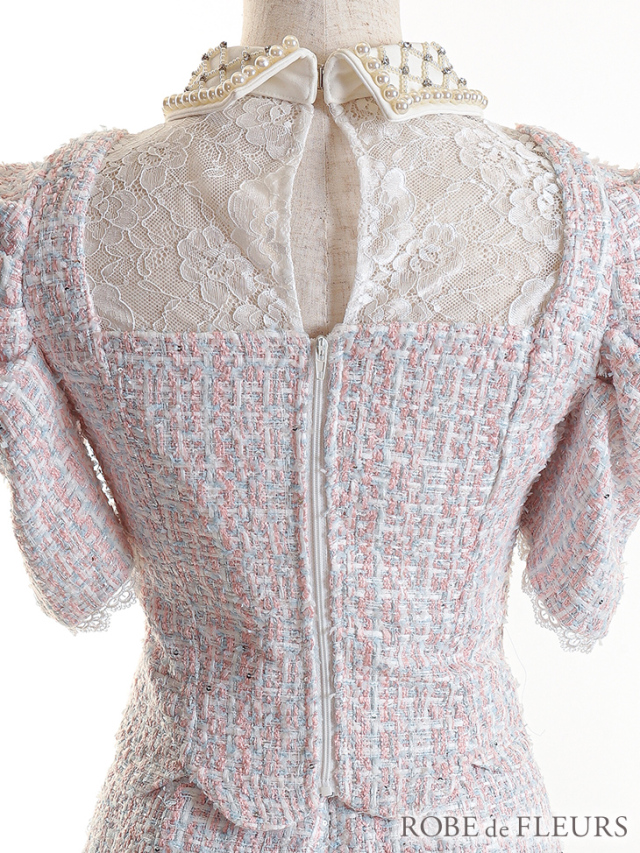 ツイードとパールビジュー襟の組み合わせでクラシカルなドレス♡