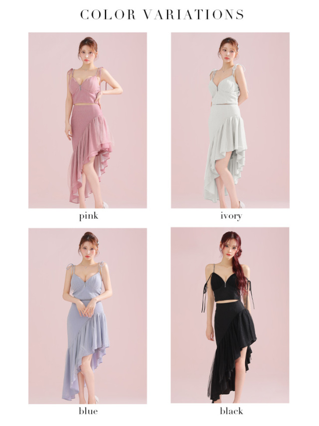 | ■Sサイズ バスト約68~82cm ウエスト約55~65cm ヒップFREE 着丈(トップス)脇下約20cm(スカート)約35~85cm |