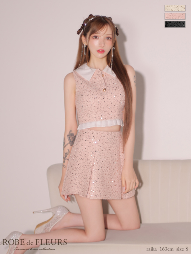 | 実寸サイズ | ■XSサイズ バスト約79cm ウエスト約55~60cm ヒップFREE 着丈(トップス)約33cmスカート丈約36cm |
